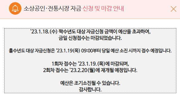 각 신청 회차는 신청 시작 이후 자금이 소진되면 종료되니, 조기에 신청하셔야 합니다.