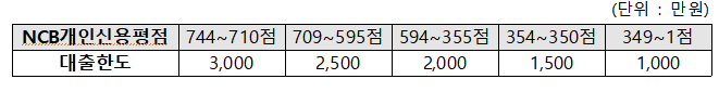 2) 신용평점구간별 한도 차등화(대출신청일의 NCB개인신용평점 기준)