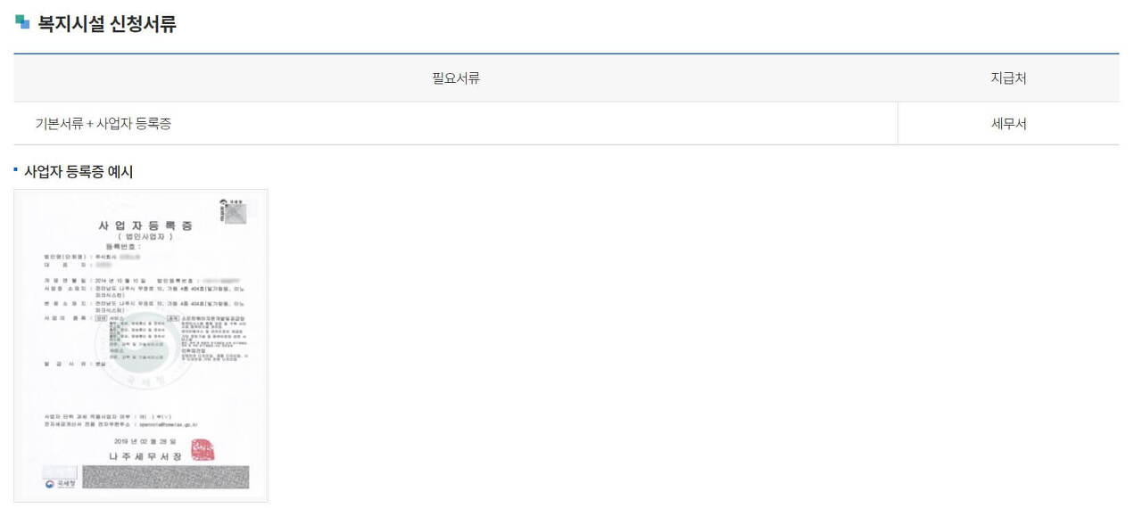 - (복지시설) 사업자등록증