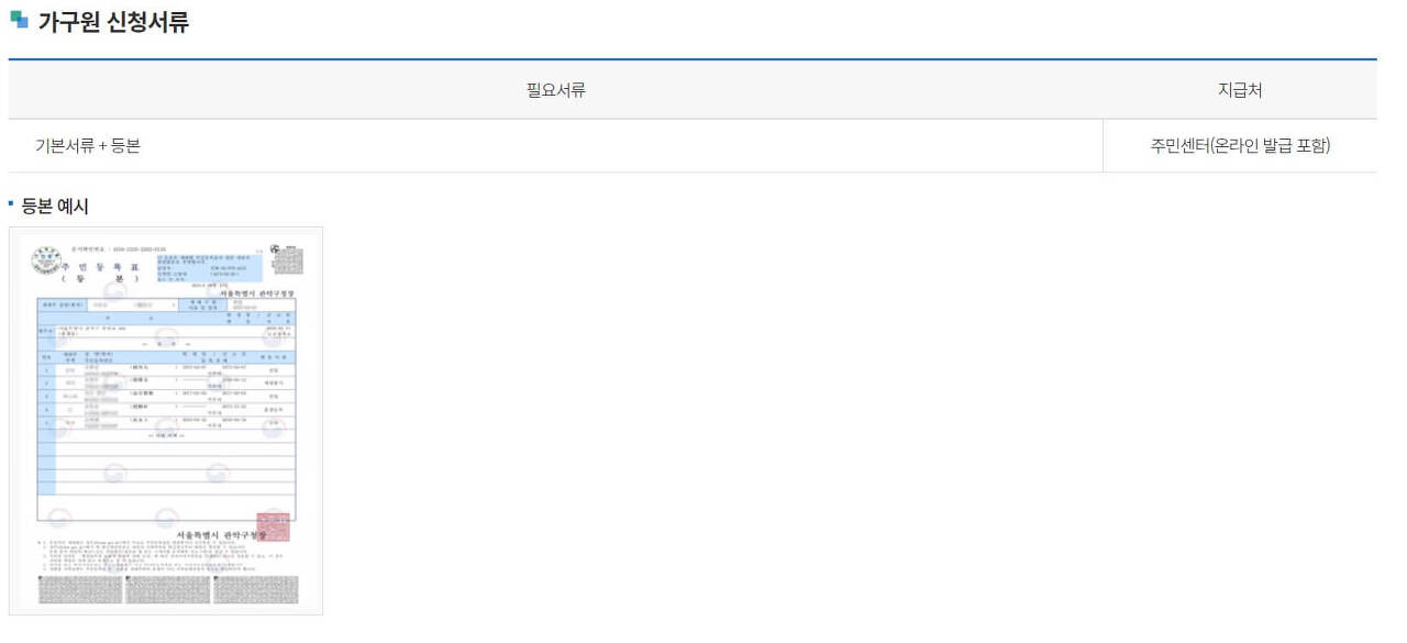 가구원 신청서류