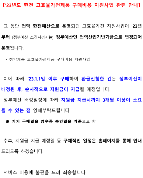한전 고효율 가전제품 구매비용 지원사업